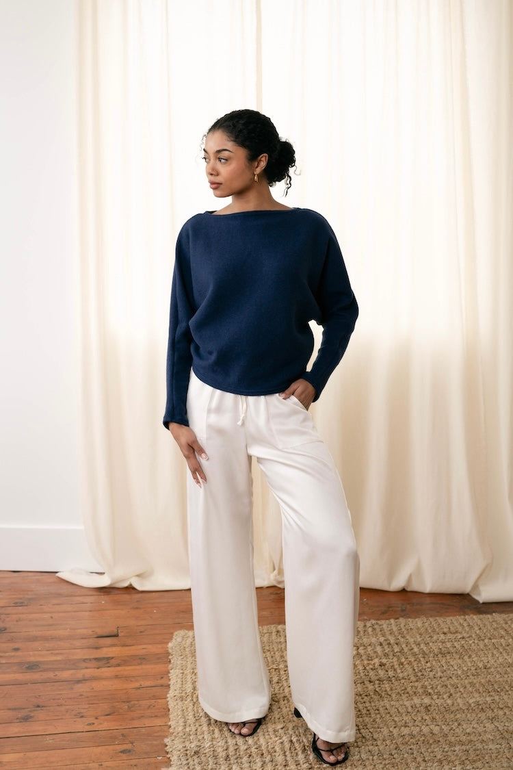 The Scoop: Our newest Autumn essential that you could wear everyday! Designed to be your instant favorite with a straight cut neckline, dolman sleeves, and lined with a soft cotton jersey, this sweater brings a touch of chic and comfort with anything you pair it with.