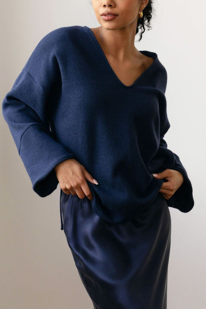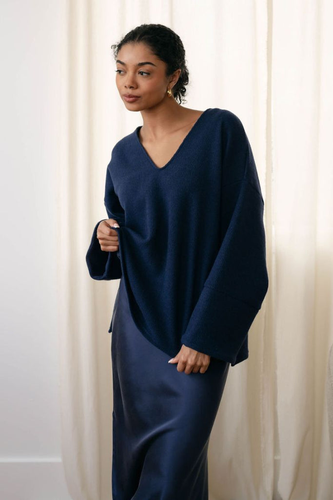 The Scoop: Meet your new favorite sweater. This slouchy silhouette is designed with a soft V-neckline, slits at the side, oversized cuffed sleeves, for a touch of flare that creates cozy sophistication. Made from the softest knit and lined with cotton jersey for ultimate comfort and warmth, this versatile sweater is able to pair with almost anything and is perfect for cozying up in for the colder days ahead.