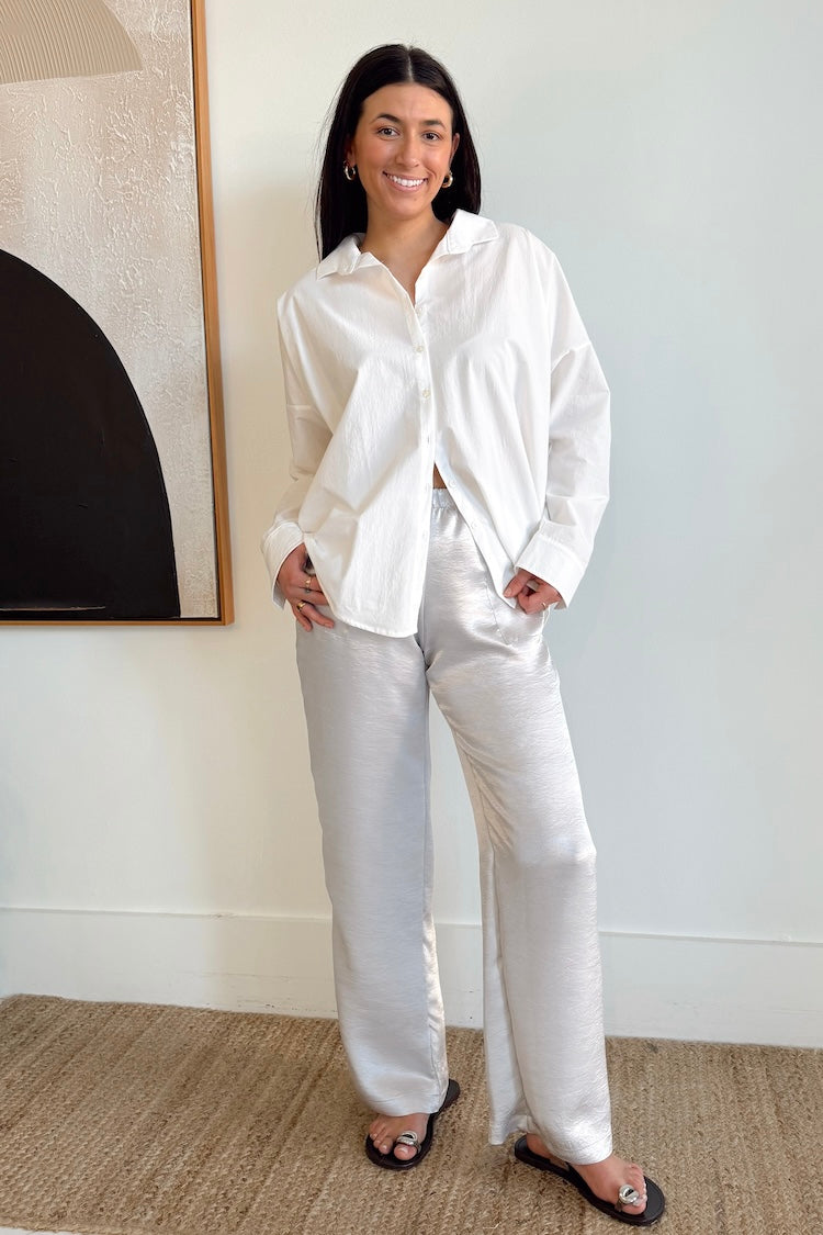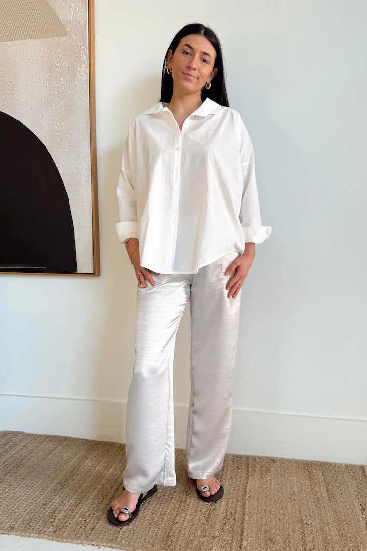 The Scoop: A wardrobe staple beyond all others, our Closet Hero. A classic silhouette with single button cuffs and a front button closure. The perfect piece for layering, now made in cotton poplin. This fabric features a natural wrinkled texture while also being buttery soft with the true crisp structure of cotton poplin.