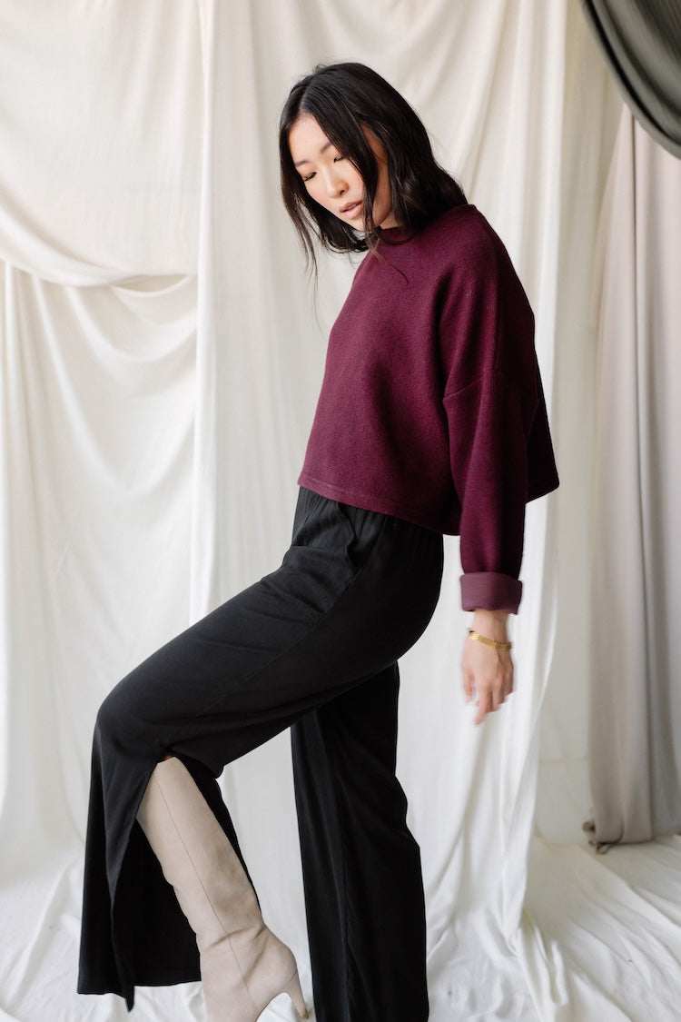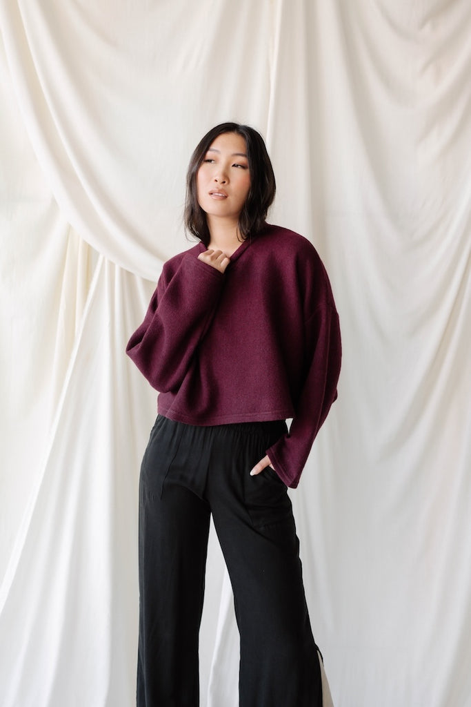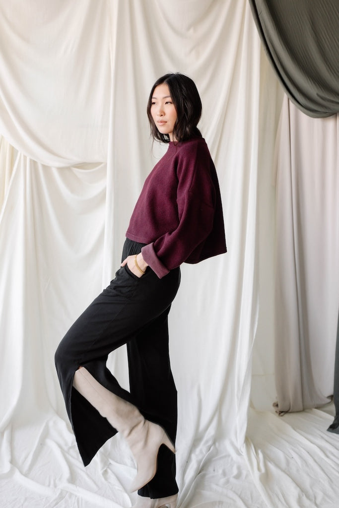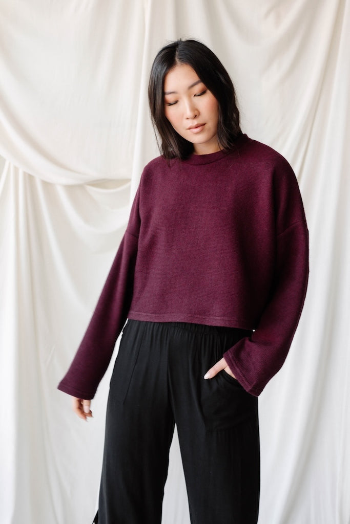 Cropped Crew Sweater - Knit- Aubergine
